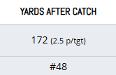 For context, WR Demario Douglas ranks #3 and #11 in those categories, from left to right. If you’re going to stretch a defense, you need man-coverage beaters, and if you’re not focused on that, you need to at least generate yards after the catch.