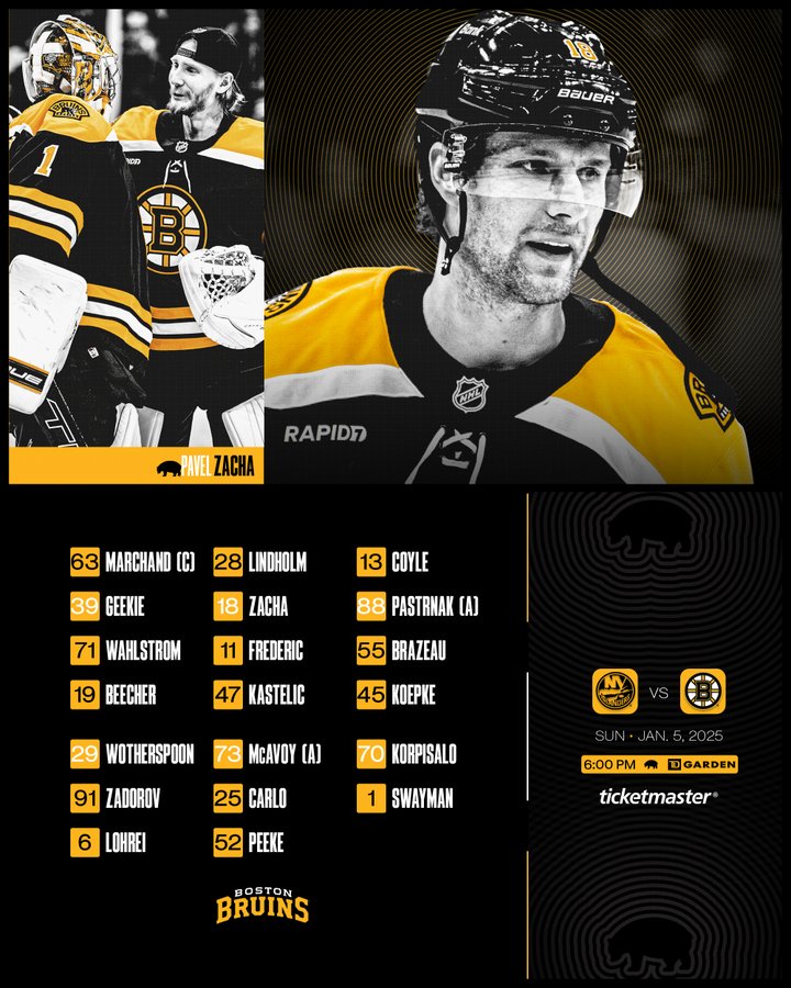 - Bring Poitras back up to the NHL for domino effect: Although his stature and weight will always be a concern, Matt Poitras has produced strong numbers in Providence since being sent down—and stat production is exactly what this roster needs. He should be called up to play on the second line with Zacha and Pastrnak, allowing Geekie to move down and play in his more realistic role as a third- or fourth-line winger.